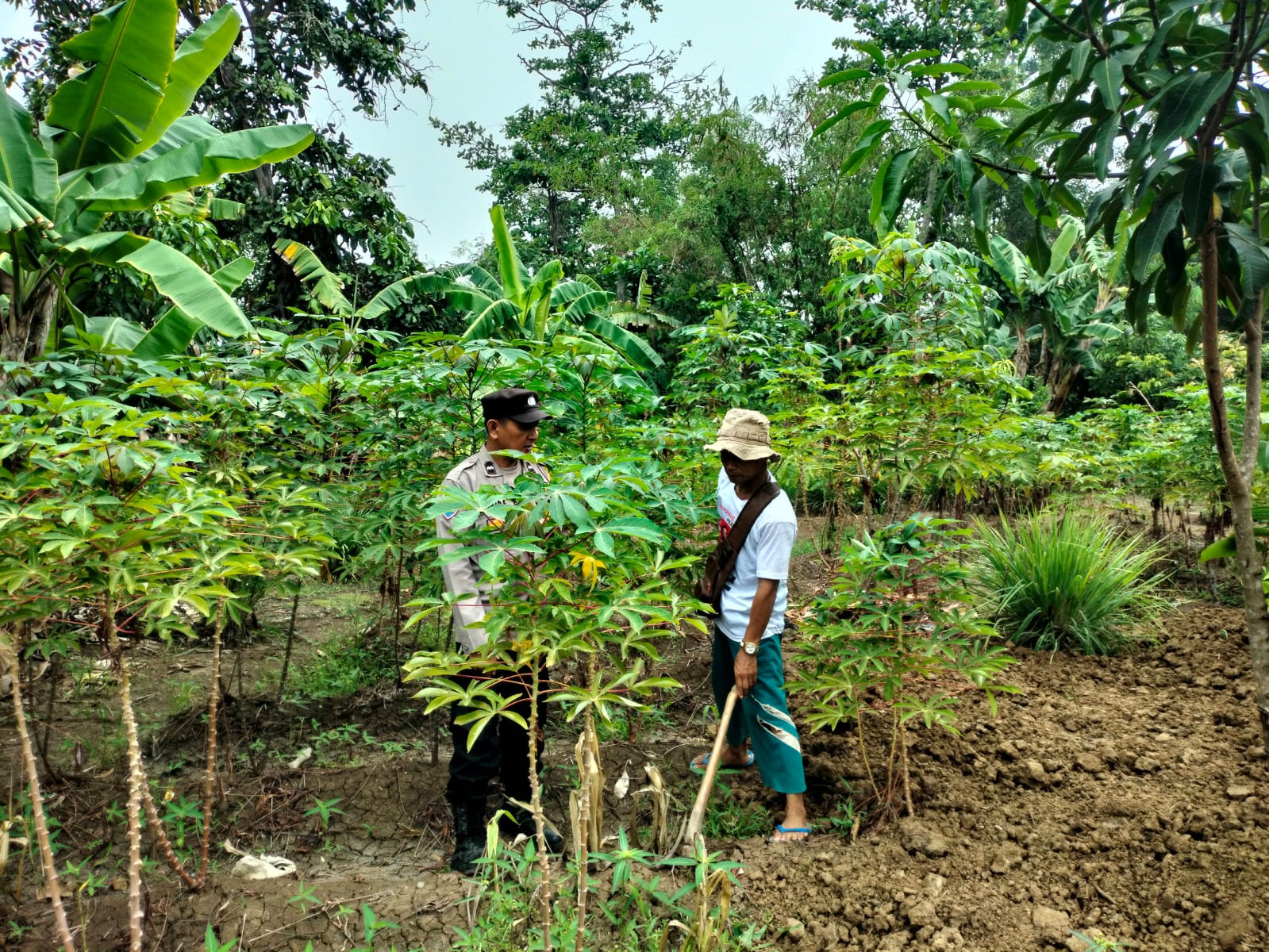 Indramayu – AIPDA Akhmad Fauji, SH, Bhabinkamtibmas Polsek Cantigi, melakukan sambang ke Blok Sunya Rt 08 Rw 03, Desa Panyingkiran Kidul, Kecamatan Cantigi, Kabupaten Indramayu, untuk memantau perkembangan lahan perkebunan buah singkong milik Warnadi. Minggu (17/11/2024)