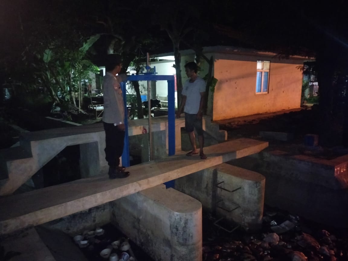 Indramayu, – Kapolsek Cantigi, IPTU Ian Hernawan, SH.MAP, beserta anggota Polsek Cantigi jajaran Polres Indramayu Polda Jabar, melaksanakan kegiatan pengamanan dan pengawalan jadwal gilir giring air di tutupan atau pintu air Blok Bandos, yang berada di Desa Cidempet, Kecamatan Cantigi, Kabupaten Indramayu, Senin (21/8/2023) malam.