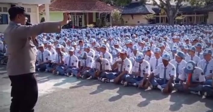 Polsek Cigasong Sosialisasikan Call Center 110 dan Aplikasi Super App Presisi Polri kepada Guru dan Siswa-siswi SMKN 1 Majalengka