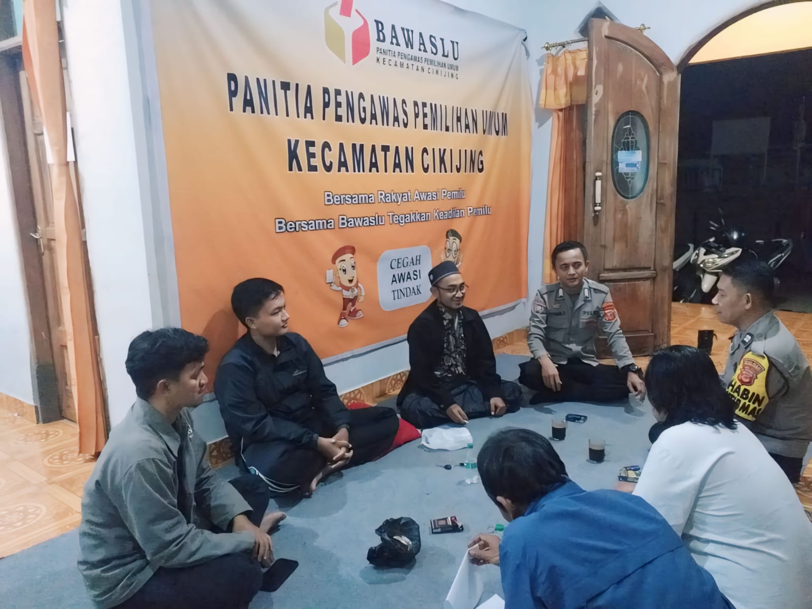 Majalengka, – Dalam upaya menjaga kondusifitas jelang Pilkada 2024, Bhabinkamtibmas Polsek Cikijing, Polres Majalengka, Polda Jabar, Aiptu Usin dan Bripka Achmad Supriyono melaksanakan kegiatan Ngobrol Mas (Ngopi Bareng Polisi dan Masyarakat) bersama Panwaslu Kecamatan Cikijing. Kegiatan ini berlangsung di Kantor Sekretariat Panwaslu Kecamatan Cikijing, Kabupaten Majalengka, pada Jumat (14/06/2024) malam.