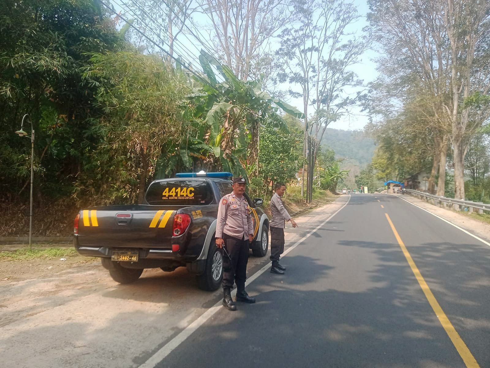 Majalengka – Polsek Cikijing Polres Majalengka Polda Jabar, Ps. Panit Samapta lll Aiptu Agus Sri Wandono, S.H dan Bhabinkamtibmas Bripka Achmad Supriyono melaksanakan kegiatan patroli jalur rawan laka lantas guna mencegah kecelakaan lalu lintas di Jalan Raya Cikijing-Kuningan tepatnya di Desa Sindangpanji, Kecamatan Cikijing, Kabupaten Majalengka, Rabu (09/08/2023).