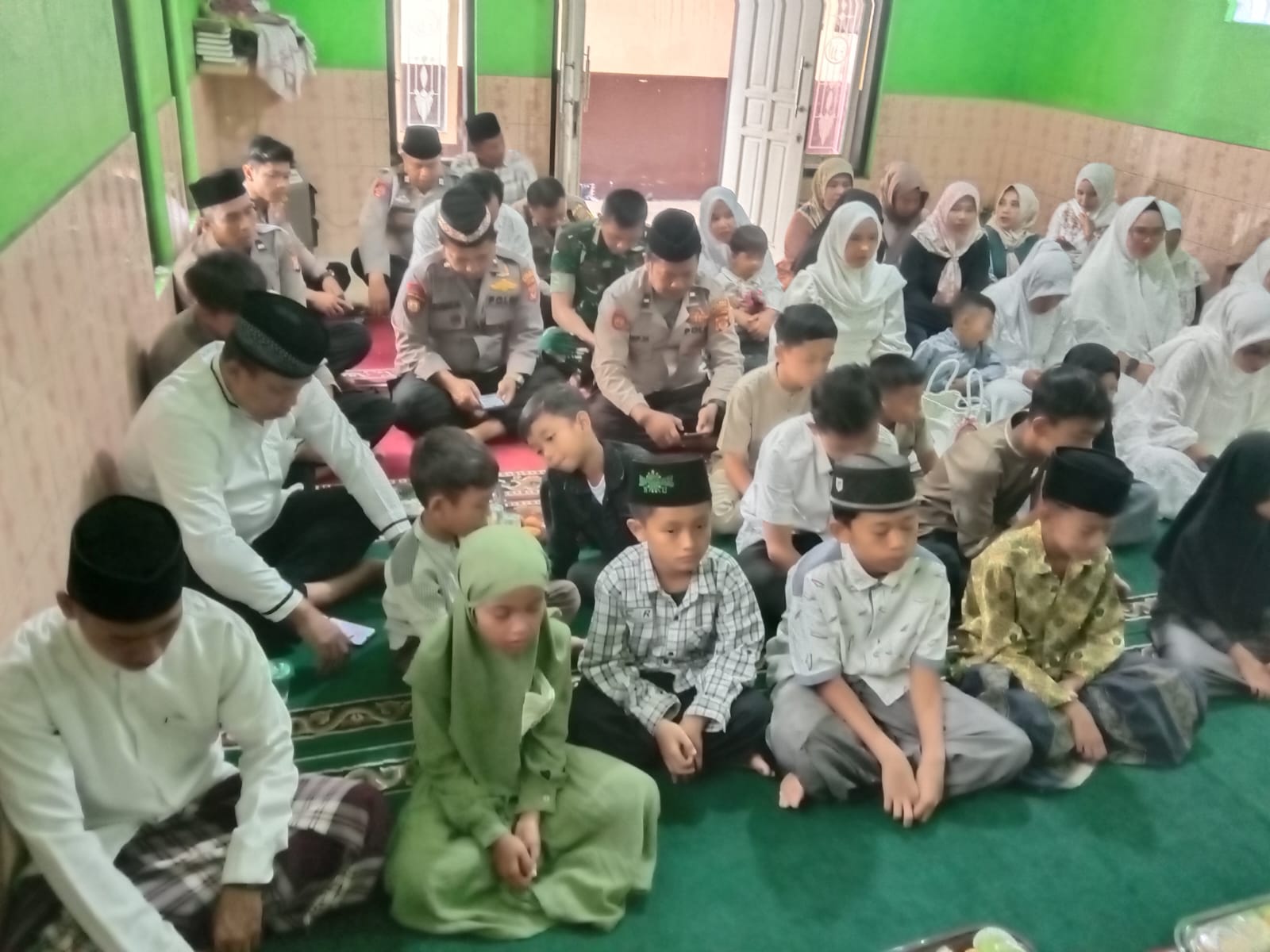 Peringatan Isra’ Mi’raj di Polsek Cikijing diakhiri dengan do’a bersama untuk kesuksesan Pemilu 2024 serta pemberian santunan kepada anak yatim.