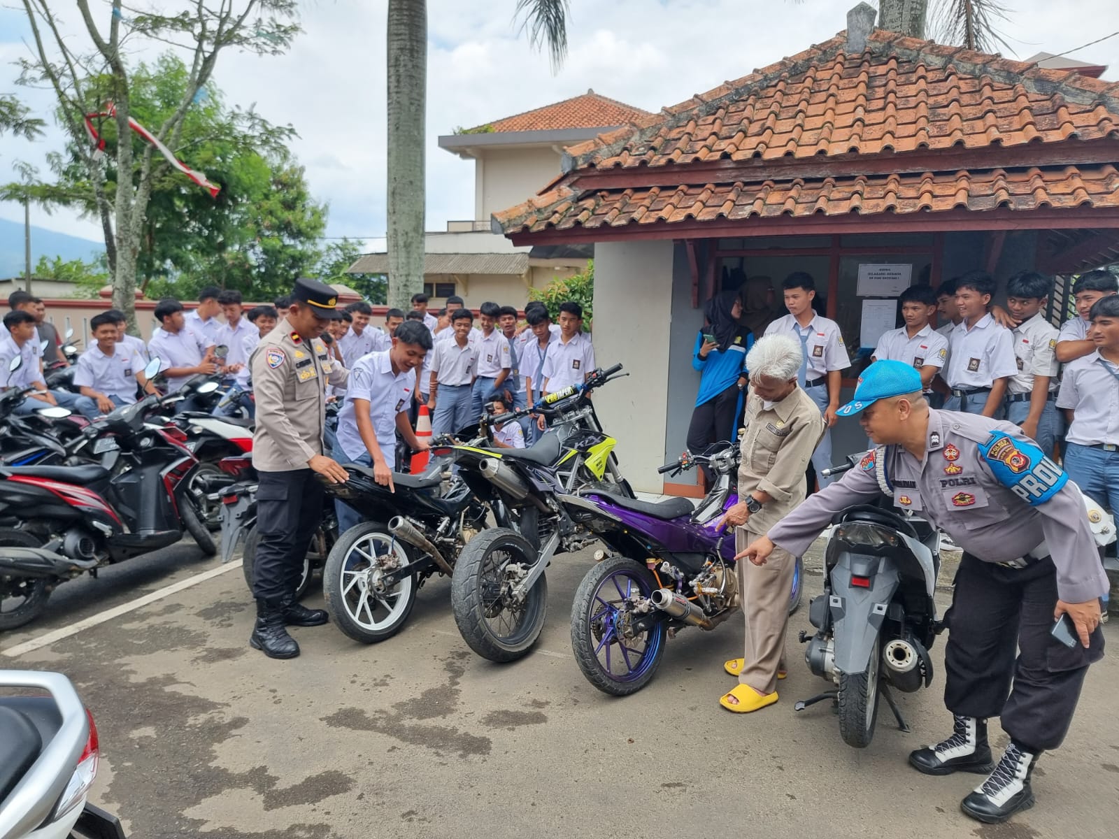 Majalengka – Unit Binmas Polsek Cikijing Polres Majalengka Polda Jabar melakukan razia terhadap knalpot yang tidak sesuai spesifikasi dan teknis (Spektek) di SMAN 1 Cikijing, Kecamatan Cikijing, Kabupaten Majalengka, pada Selasa kemarin. Razia ini dipimpin oleh IPDA Cecep Sumahadi dari Panit Binmas dan Aiptu Memen Suparman, S.H. dari Ps. Panit Provos.