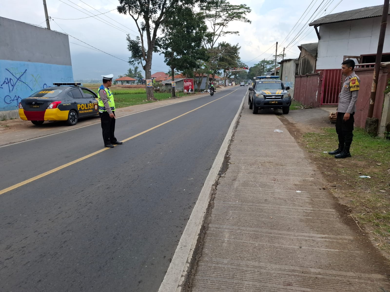 Majalengka – Demi menekan angka pelanggaran pengendara dan kecelakaan lalu lintas, Ps. Panit Lantas Polsek Cikijing Polres Majalengka Polda Jabar, Aiptu Ade Deni H, bersama Bhabinkamtibmas Briptu Asep Indra melaksanakan giat PATAKA (Patroli Rawan Kecelakaan) di jalur Cikijing-Ciamis, tepatnya di Blok Cibodas Desa Cidulang, Kecamatan Cikijing, Kabupaten Majalengka, Minggu (30/06/2024).