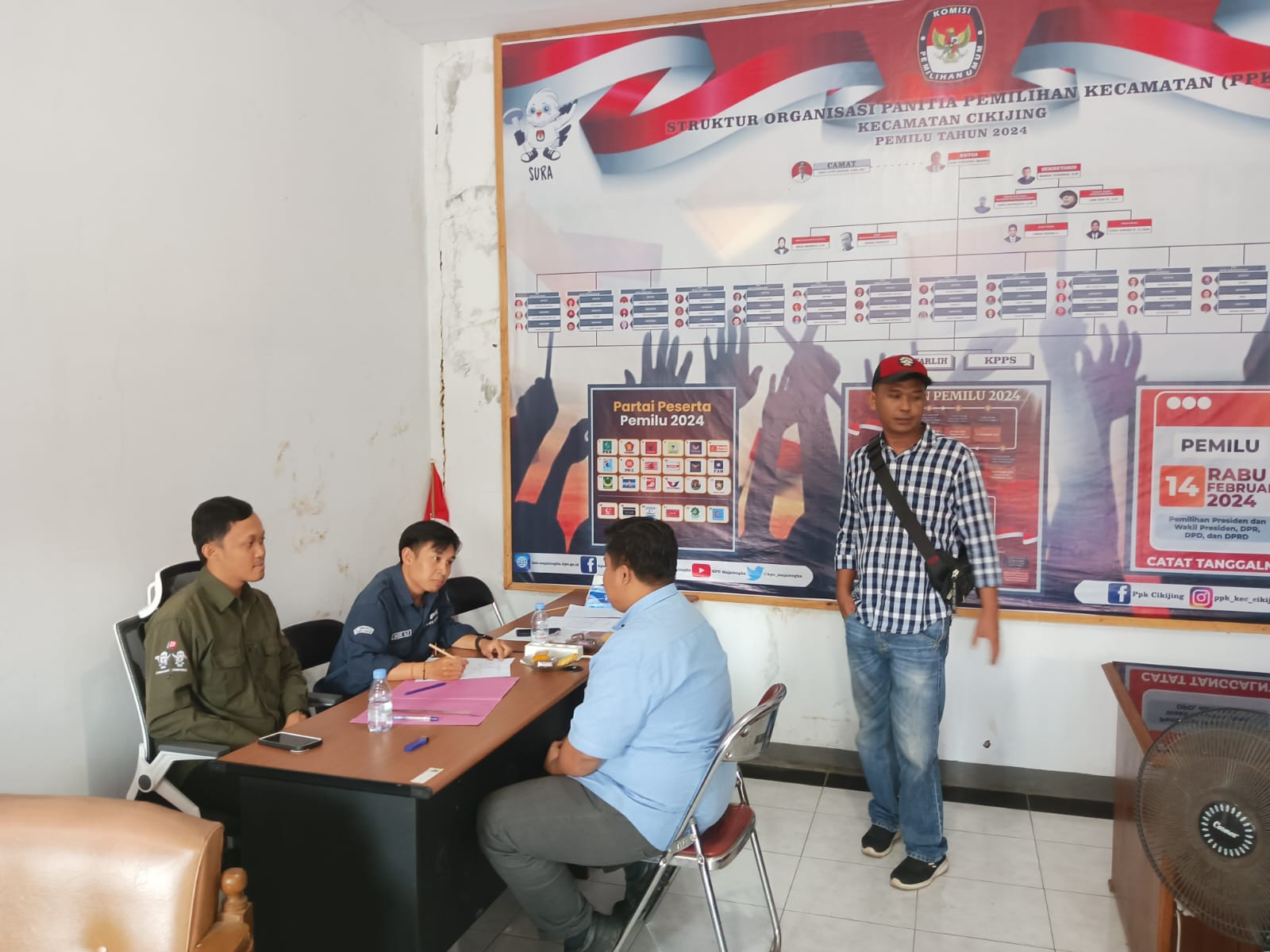 Majalengka – Ps. Panit Min Ik. Polsek Cikijing, Polres Majalengka, Polda Jabar, Aipda Purwanto memantau kegiatan tes wawancara seleksi calon Anggota PPS pada Pilkada 2024 yang dilaksanakan di Aula Kantor Kecamatan Cikijing, Kabupaten Majalengka. Rabu (22/05/2024).