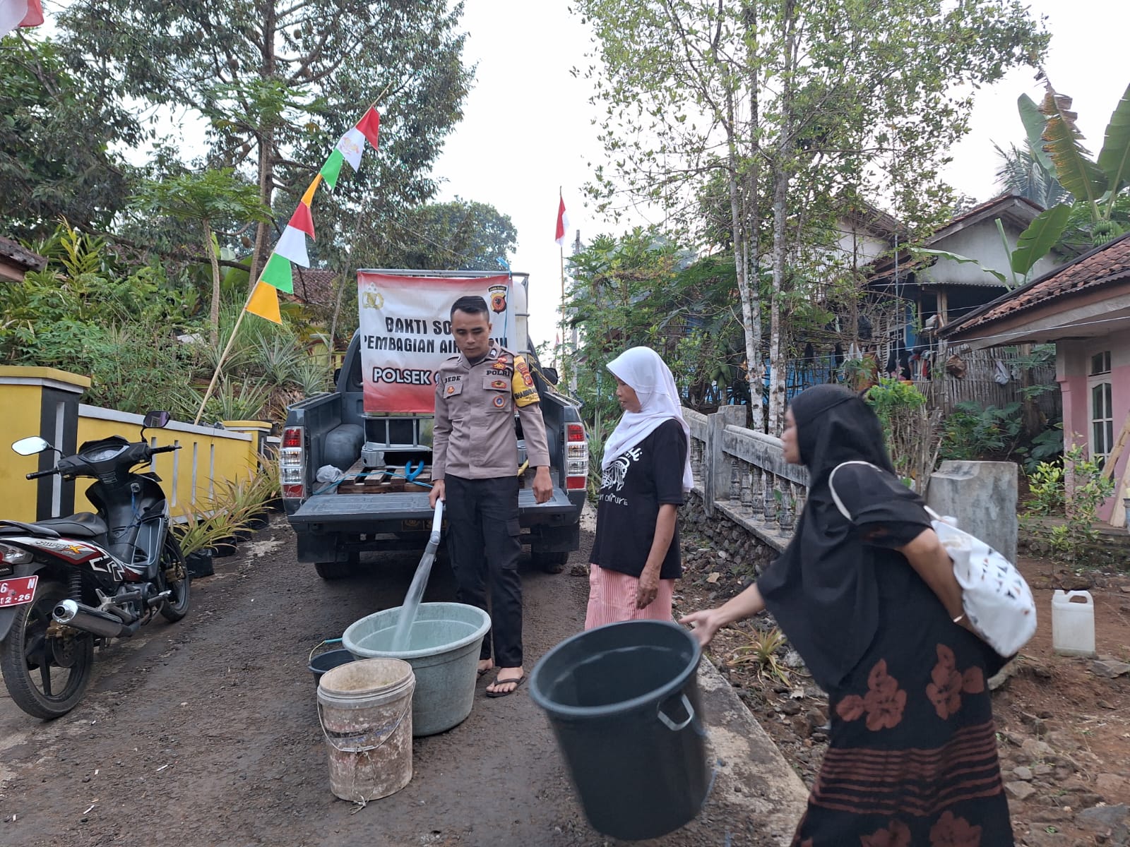Oleh karenanya, personel Polsek Cineam rutin melakukan pendistribusian air bersih ke warga masyarakat yang membutuhkan, salah satunya di Dusun sukahurip RT 21 RW 5 Desa Madiasari kec Cineam.
