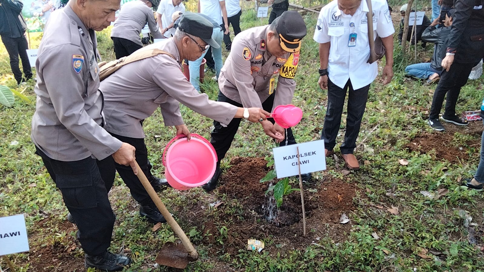 Polres Bogor – Polsek CWI Polres Bogor melaksanakan kegiatan Penanaman Pohon Dalam rangka Program Gerakan Polri Lestarikan Negeri Melalui Penghijauan Sejak Dini Dan Santunan Anak Yatim Tingkat Kec. Ciawi pada hari Rabu tanggal 23 Agustus 2023 dimulai Jam 08.30 Wib s/d 11.30 Wib bertempat di Kp. Citerong Rt. 004/004 Ds. Cibedug Kec. Ciawi Kab. Bogor.