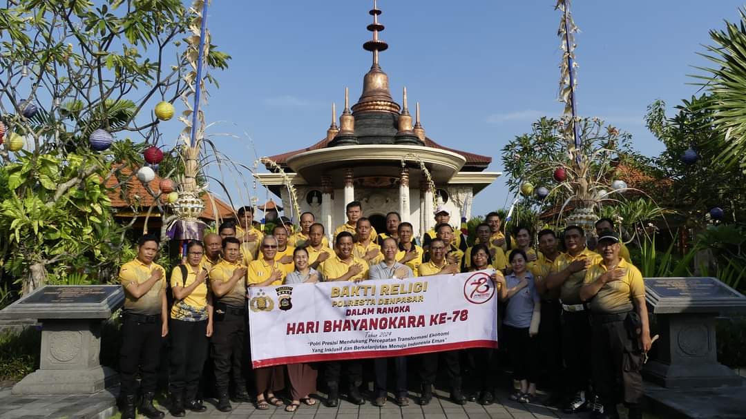Menyambut Hari Bhayangkara ke 78, Kepolisian Sektor Denpasar Barat (Polsek Denbar) menggelar kegiatan Bakti Religi membersihkan rumah ibadah yang ada di wilayah Kecamatan Denpasar Barat, Jumat (14/6/2024) pagi.