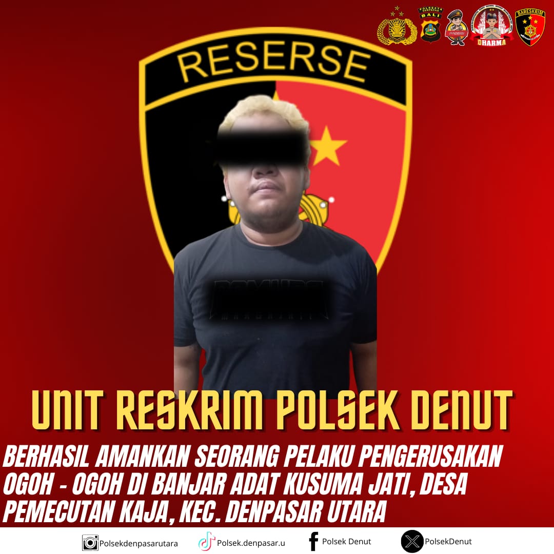Unit Reserse Kriminal (Reskrim) Polsek Denpasar Utara berhasil mengungkap kasus perusakan ogoh-ogoh di Banjar Adat Kusuma Jati, Pemecutan Kaja, Denpasar Utara. Pelaku, seorang pria berinisial KEEP (26), diamankan setelah tertangkap kamera pengawas (CCTV) sedang merusak ogoh-ogoh bertajuk Raksasa ,Selasa, 11 Maret 2025.