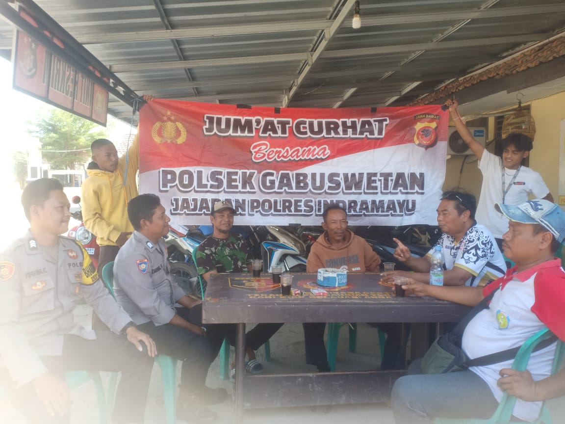 Kegiatan Jumat Curhat dilaksanakan di Blok Saradan Desa Sekarmulya Kecamatan Gabuswetan Kabupaten Indramayu, dihadiri warga setempat yang dipimpin langsung Kapolsek Gabuswetan AKP Agus Kristiana, S.HI., didampingi Kanit Propam Polsek Gabuswetan Aiptu Rokhman dan Anggota Bhabinkamtibmas Polsek Gabuswetan Bripka Zaenal Abidin.