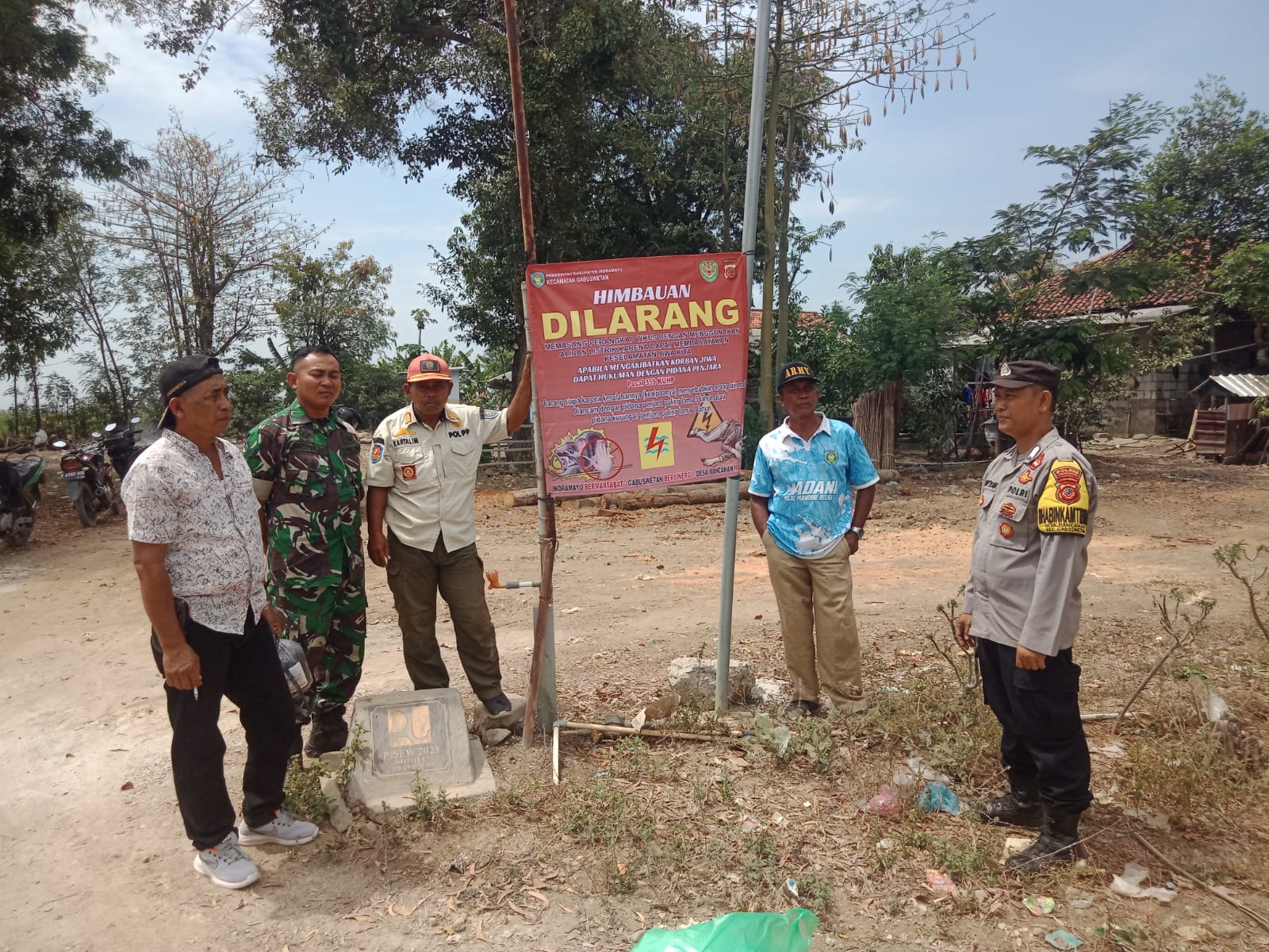 Polsek Gabuswetan Pasang Spanduk Larangan Penggunaan Aliran Listrik Untuk Jebakan Hama Tikus