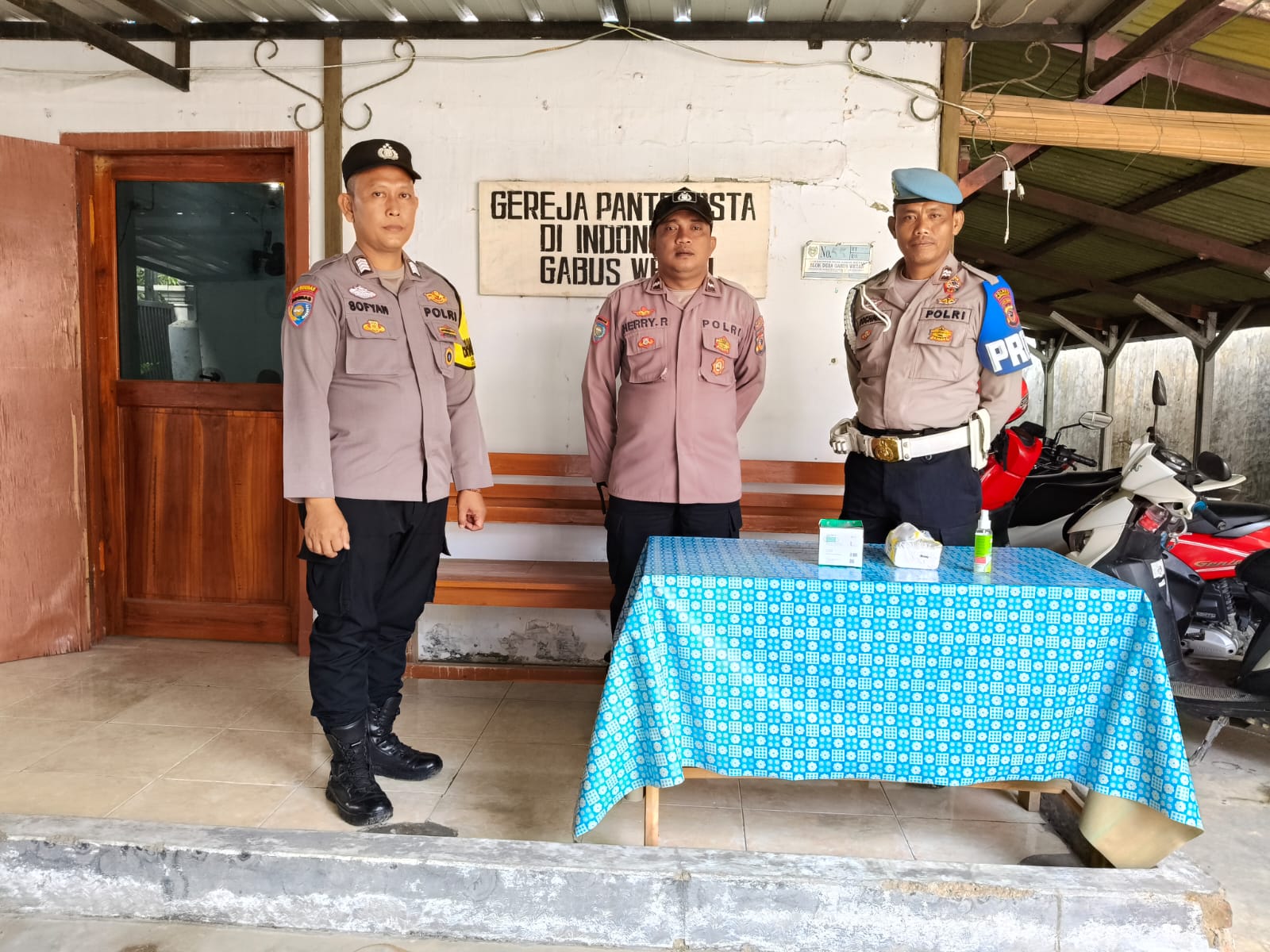 Indramayu – Polsek Gabuswetan bersama instansi terkait melaksanakan pengamanan kebaktian rutin Hari Minggu di Gereja Pantekosta Gabuswetan, Kecamatan Gabuswetan, Kabupaten Indramayu, Minggu (12/1/2025).