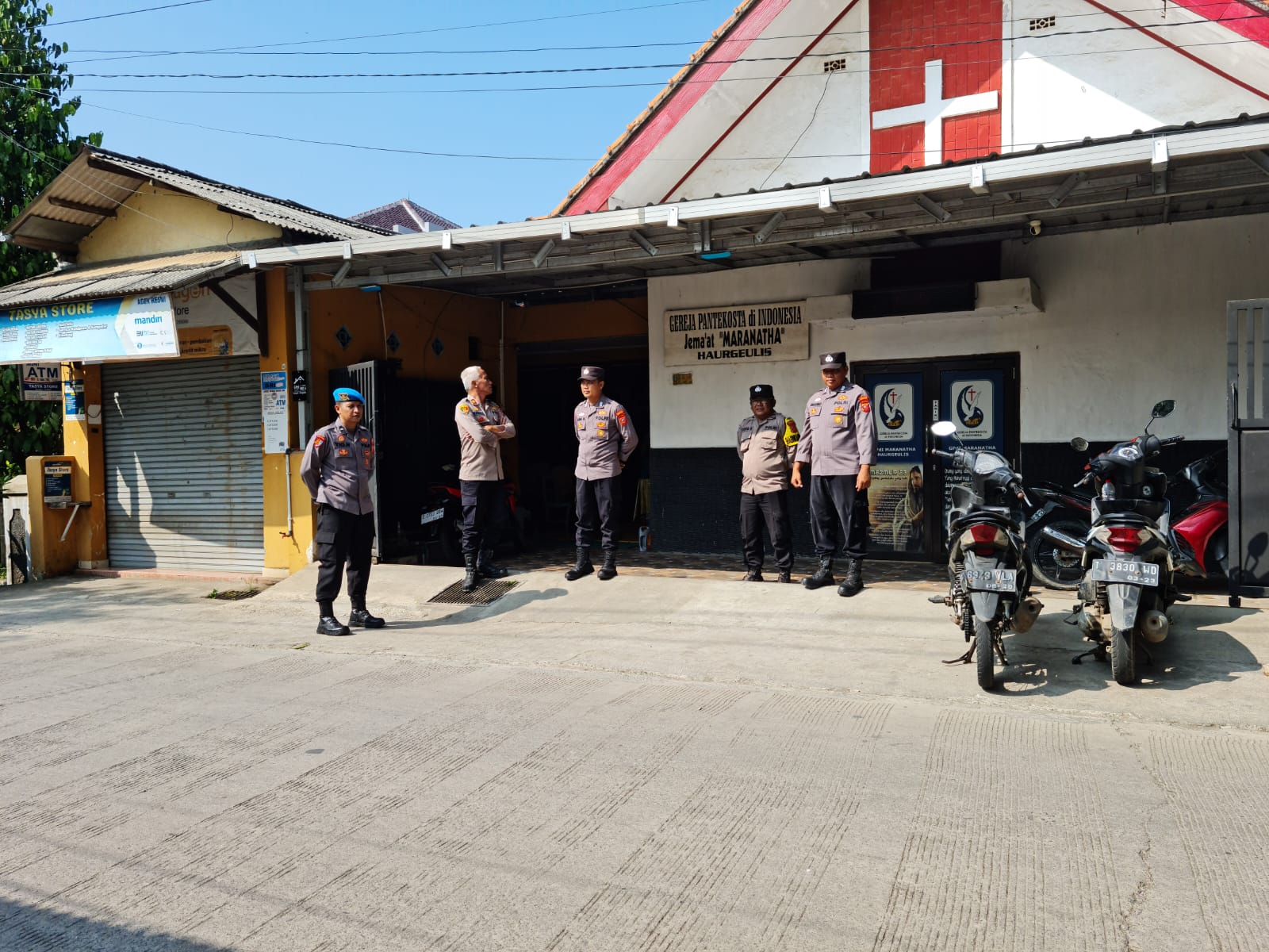 Indramayu, – Kapolsek Haurgeulis, Polres Indramayu Polda Jabar IPTU Maman Kusmanto, bersama anggotanya melaksanakan pengamanan kegiatan ibadah umat Kristen di Gereja Pantekosta di Indonesia Jemaat MARANATA, yang terletak di Desa Sukajati, Kecamatan Haurgeulis, Kabupaten Indramayu. Minggu (18/8/2024)