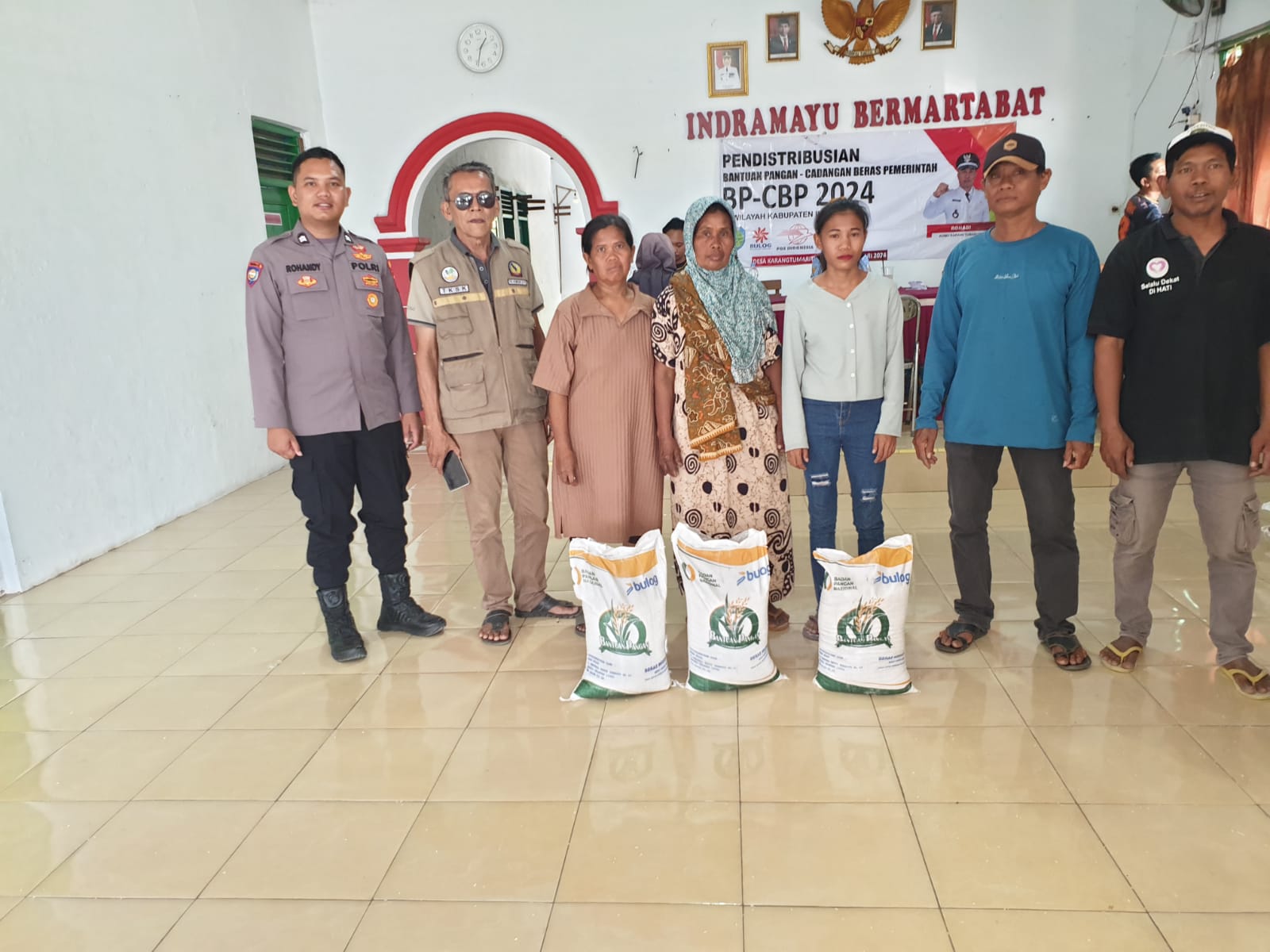 Indramayu – Bhabinkamtibmas Polsek Haurgeulis, Polres Indramayu Polda Jabar, Briptu Dede Rohandi, S.H., monitoring pembagian beras Bantuan Pangan Cadangan Beras Pemerintah (BP-CBP) tahun 2024 di Desa Karangtumaritis, Kecamatan Haurgeulis, Kabupaten Indramayu. Sabtu (19/10/2024)