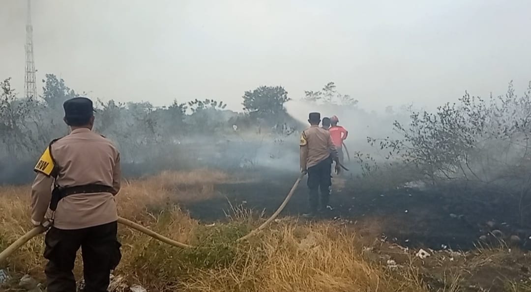 Polsek Jatiwangi Bersama Unsur Terkait Melaksanakan Pemadaman Kebakaran Lahan Kosong di Komplek Ruko Jatiwangi Square