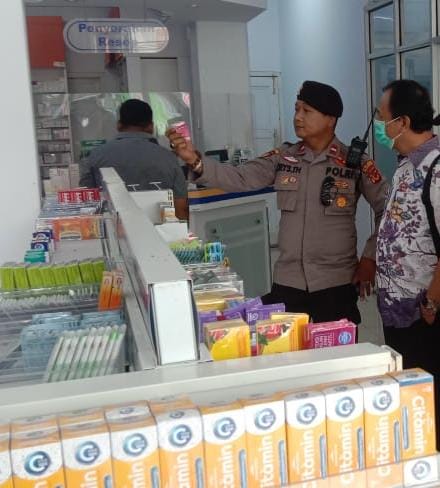 Pada patroli kali ini, tim mengadakan monitoring dan dialog di sebuah apotek, sekaligus memberikan himbauan keamanan.