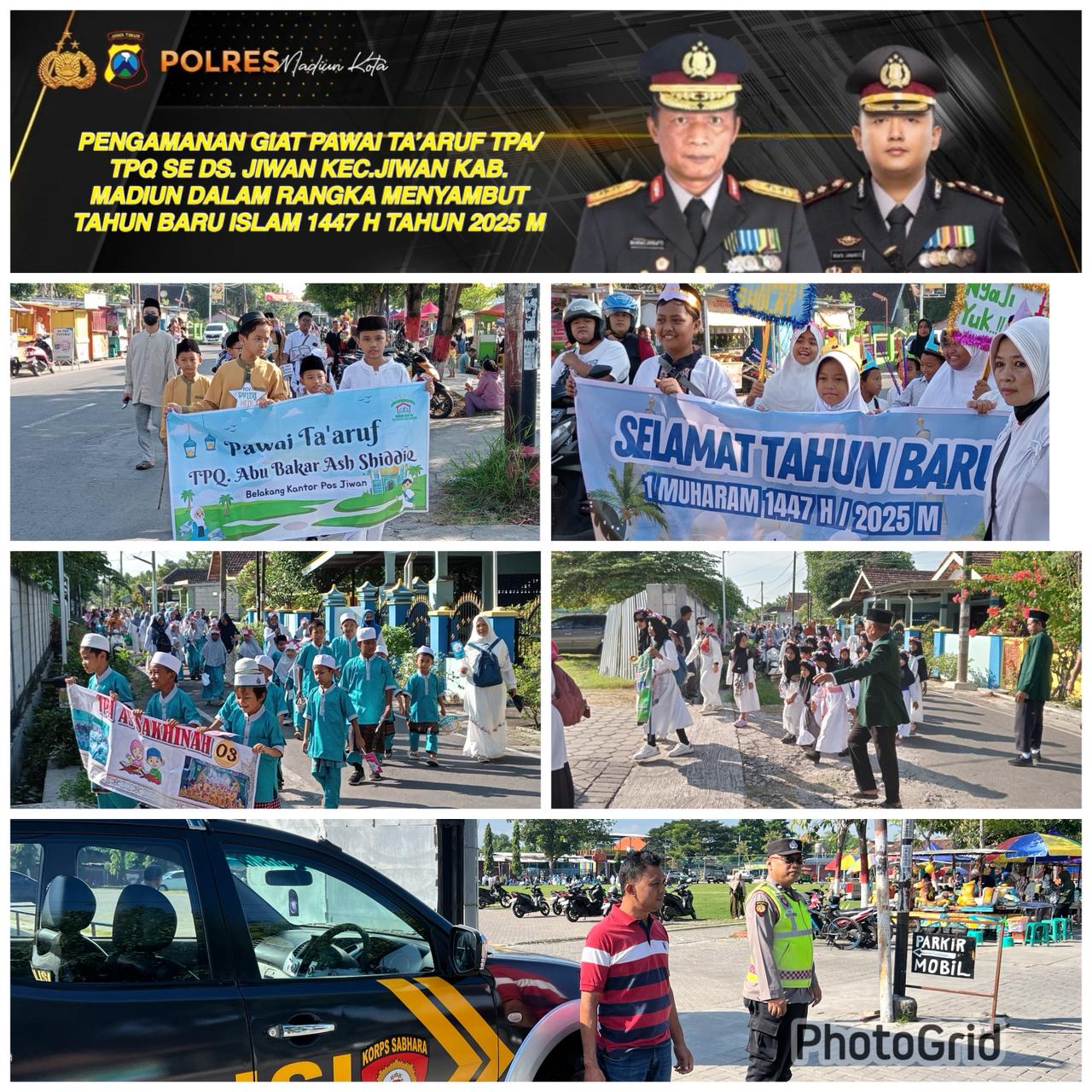 MADIUN,BUSERJATIM.COM , – Pawai ta’aruf dalam rangka menyambut Tahun Baru Islam 1447 H di Desa Jiwan, Kecamatan Jiwan, Kabupaten Madiun, berlangsung aman dan lancar pada Minggu, 29 Juni 2025. Sekitar 350 peserta dari berbagai TPA/TPQ se-Desa Jiwan turut berpartisipasi dalam kegiatan ini.