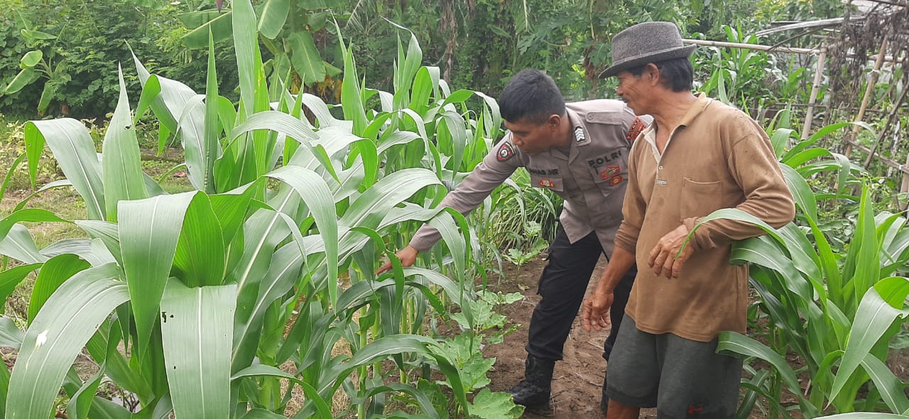 Indramayu – Bhabinkamtibmas Polsek Juntinyuat, Polres Indramayu Polda Jabar, Bripka Anas N.R., terus menggerakkan program ketahanan pangan dengan memantau perkembangan tanaman jagung di pekarangan rumah warga.
