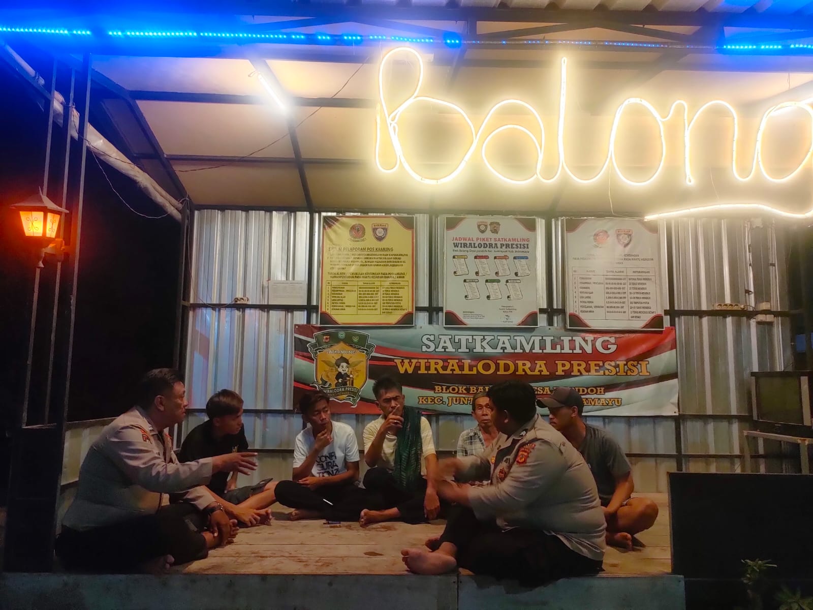 Indramayu- Polsek Juntinyuat jajaran Polres Indramayu Polda Jabar terus membangun sinergi dengan masyarakat melalui kegiatan silaturahmi Kamtibmas dengan sambang ke Pos Satkamling Wiralodra Presisi di Desa Pondoh, Blok Balong, Kecamatan Juntinyuat, Kabupaten Indramayu. Kamis (28/9/2023) malam