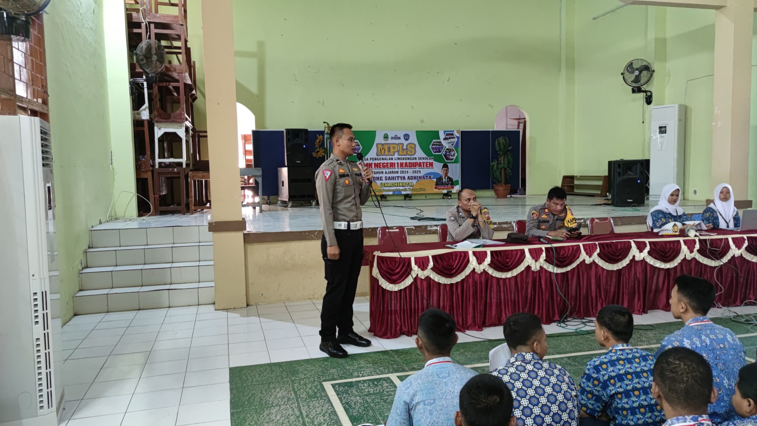 Majalengka, Polsek Kadipaten, Polres Majalengka, Polda Jabar, mengadakan penyuluhan tentang kenakalan remaja di SMKN 1 Kadipaten dalam rangka Masa Pengenalan Lingkungan Sekolah (MPLS) tahun ajaran 2024-2025, pada Rabu (17/07/2024). Kegiatan ini dipimpin oleh Kapolsek Kadipaten AKP Asep Ashari, S.H., bersama Panit Lantas 1 Polsek Kadipaten Ipda Haris Giri Sampan, S.H., dan Bripka Mochamad Atin Ramdhan, S.H.