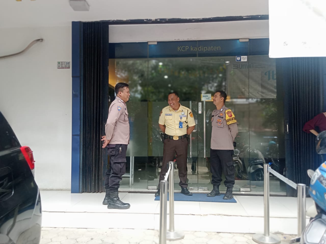 Selama patroli, anggota Polsek Kadipaten memberikan perhatian khusus terhadap area sekitar bank, termasuk memeriksa keadaan sekitar, memastikan sistem keamanan bank berfungsi dengan baik, dan berinteraksi dengan petugas keamanan serta staf bank untuk bertukar informasi terkait situasi terkini.