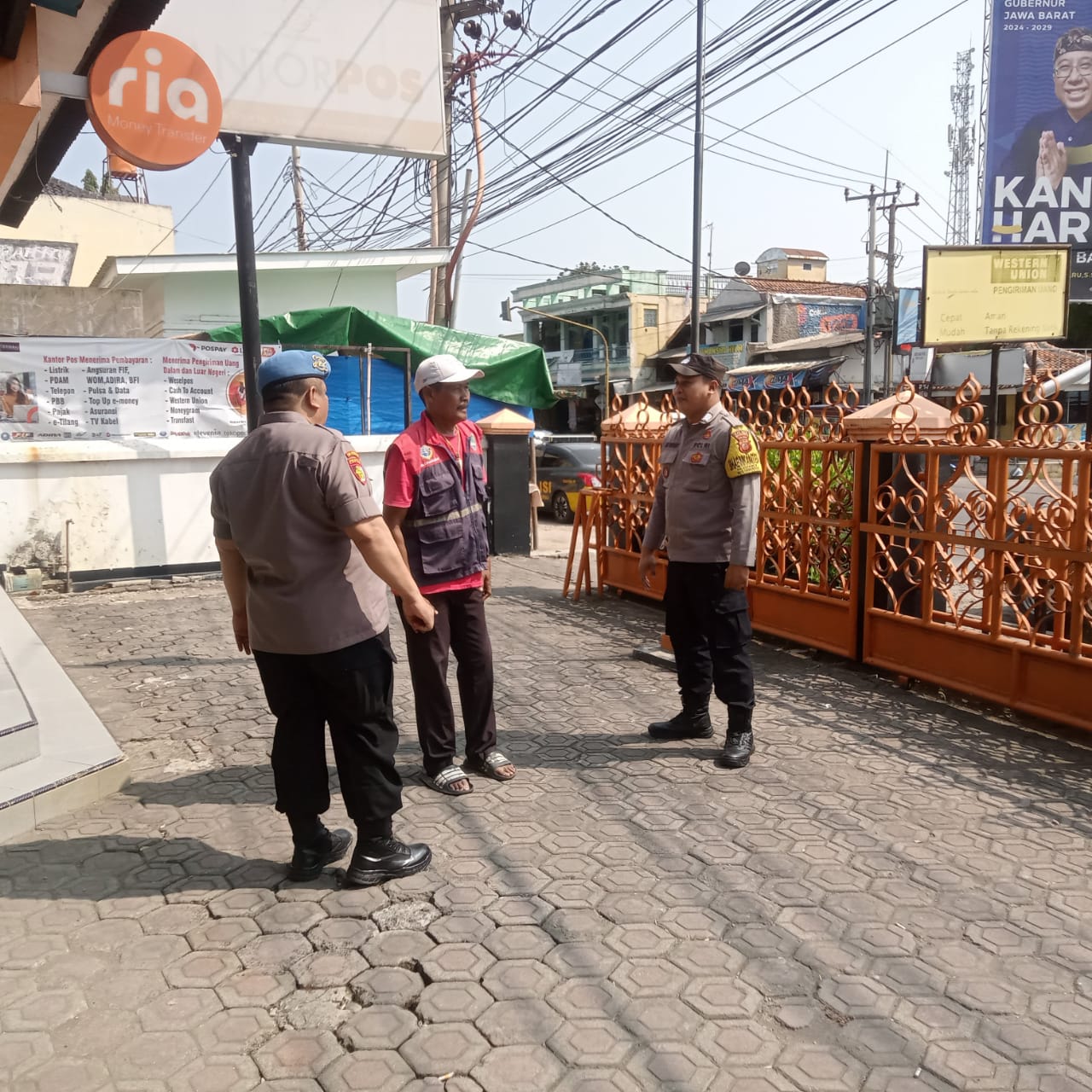 Majalengka, – Personel Polsek Kadipaten Polres Majalengka Polda Jabar, Aiptu Eja Sudirja dan Bripka Bib Abi Musyadat, melaksanakan patroli siang ke Kantor Pos di wilayah Kadipaten, Kabupaten Majalengka. Dalam patroli ini, mereka memberikan sosialisasi tentang layanan darurat call center 110 kepada para juru parkir. Jumat (2/8/2024).