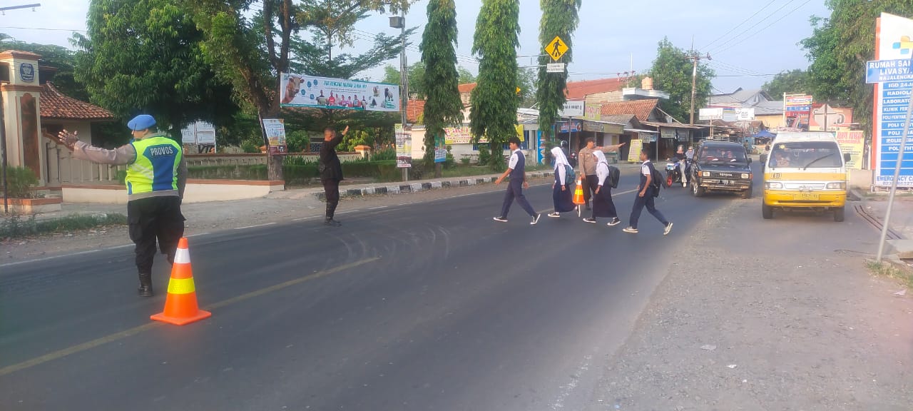 Polsek Kadipaten Tingkatkan Keamanan Lalu Lintas di Depan SMPN 1 Kadipaten mjl