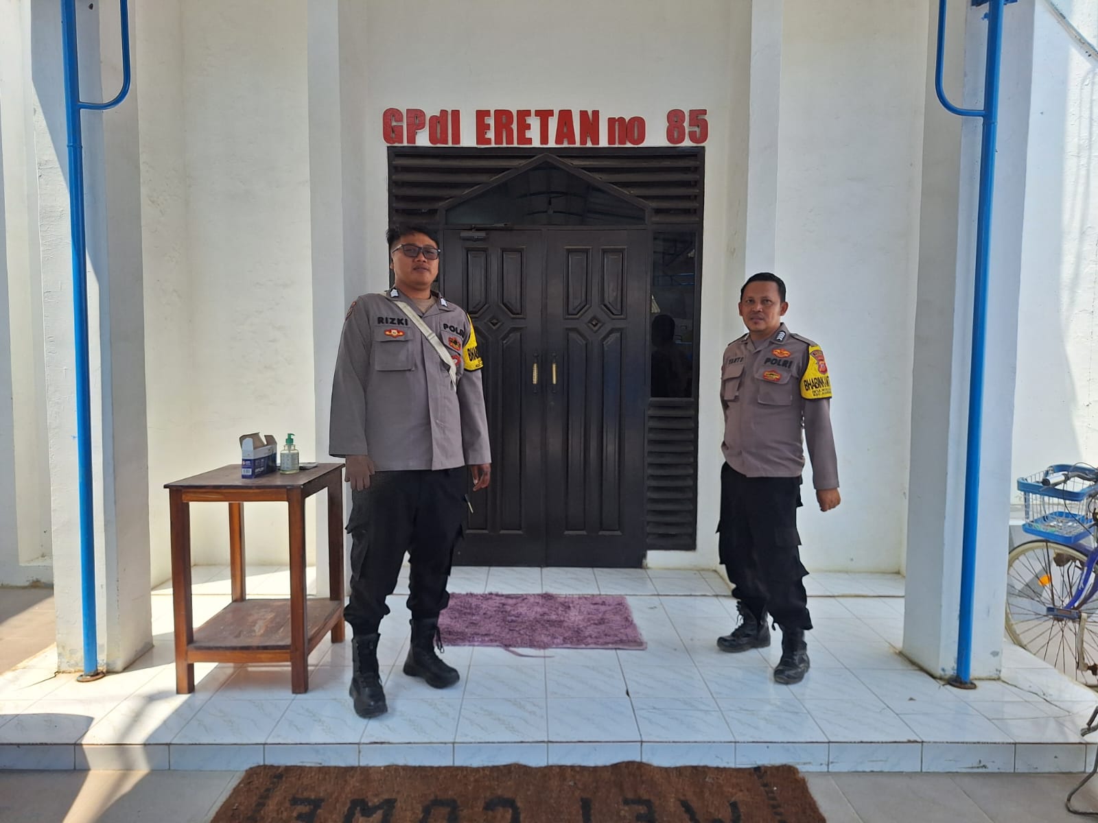Indramayu, – Polsek Kandanghaur jajaran Polres Indramayu Polda Jabar melaksanakan pengamanan kegiatan ibadah umat Kristen di Gereja diwilayah Kecamatan Kandanghaur, Kabupaten Indramayu. Minggu (17/11/2024).