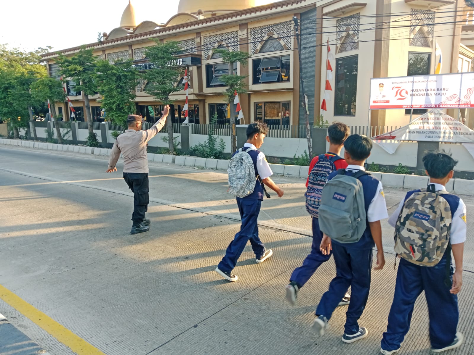 Indramayu – Polsek Kandanghaur Polres Indramayu Polda Jabar melaksanakan pengaturan lalu lintas pagi secara rutin di titik-titik rawan kecelakaan dan kemacetan di wilayah hukumnya, khususnya untuk melayani pelajar dan masyarakat yang menyebrang jalan. Senin (23/9/2024)