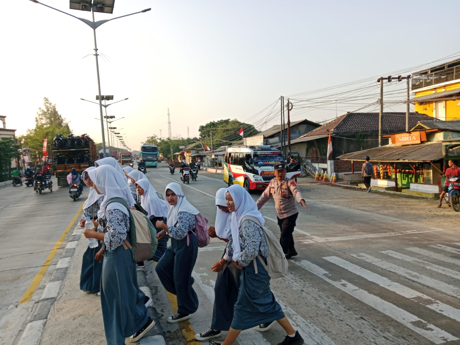 Kapolres Indramayu, AKBP Ari Setyawan Wibowo, melalui Kapolsek Kandanghaur AKP Surahmat, menyampaikan bahwa anggota Polsek Kandanghaur secara konsisten melaksanakan tugas pengaturan arus lalu lintas dan membantu menyeberangkan anak-anak sekolah setiap pagi dan siang hari.