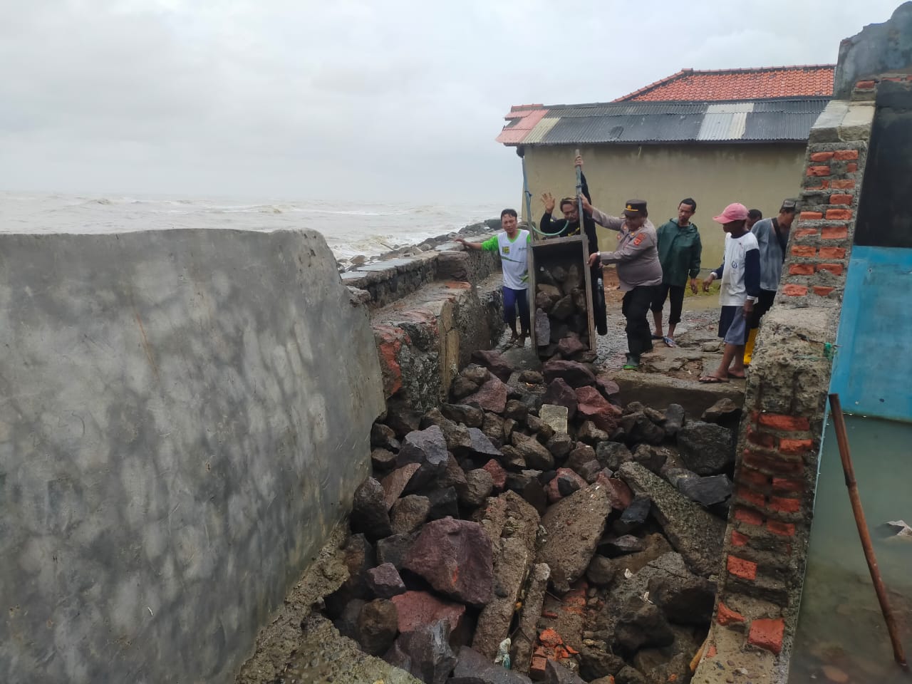 Indramayu– Polsek Kandanghaur, jajaran Polres Indramayu Polda Jabar, turut serta membantu perbaikan tanggul pembatas laut (dam barow) yang mengalami bocor akibat terjangan ombak di Desa Eretan Kulon, Kecamatan Kandanghaur, Kabupaten Indramayu, Kamis (6/2/2025).