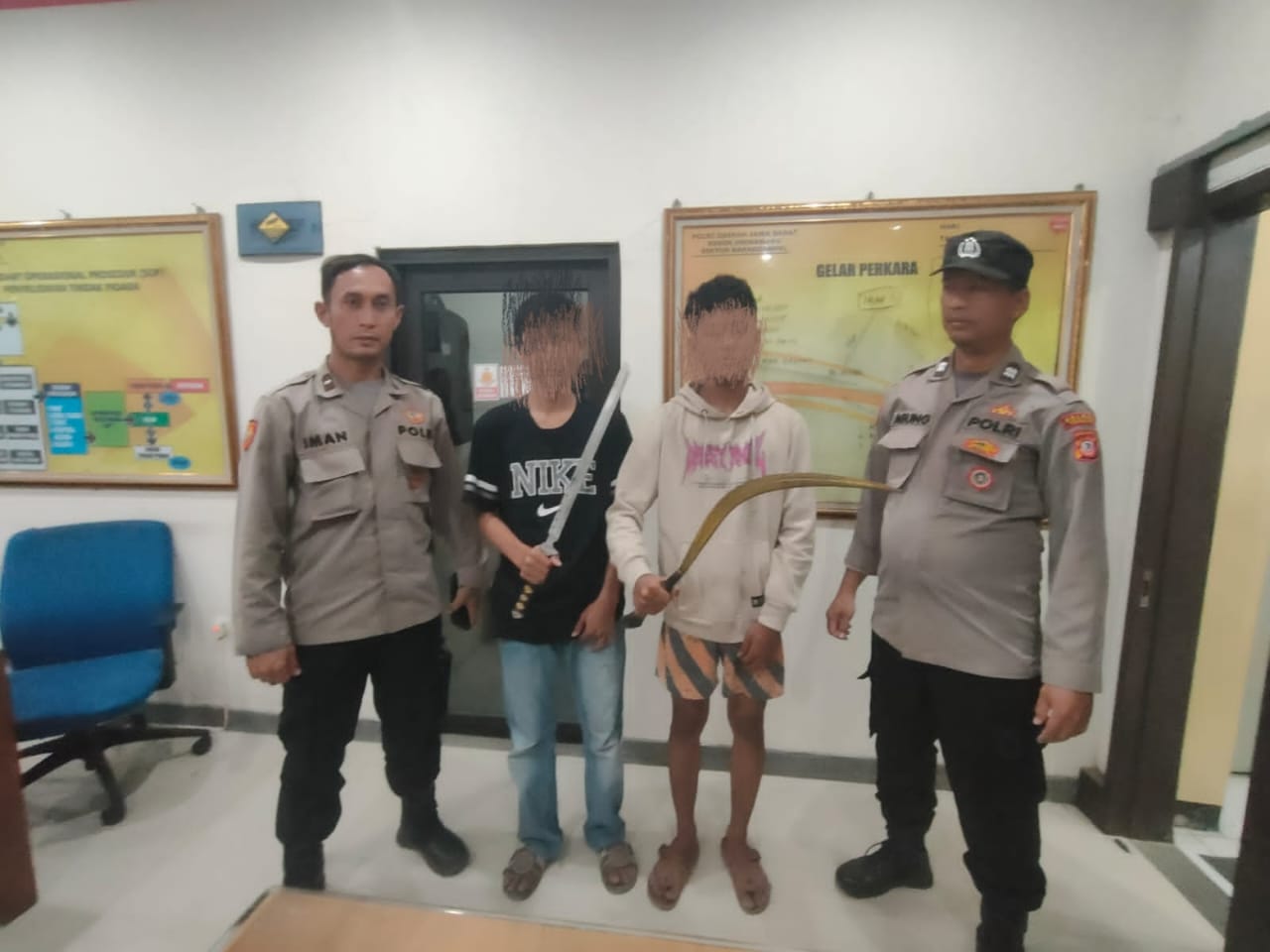 Berdasarkan keterangan tersebut, Polsek Karangampel melakukan pengungkapan dan penangkapan terhadap dua remaja yang diduga sebagai anggota geng motor dan membawa senjata tajam.