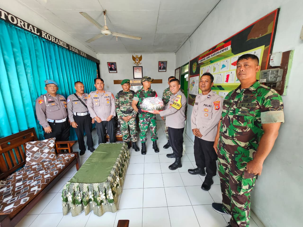 Kedatangan rombongan Polri tersebut disambut oleh Peltu Asim, selaku Batuud Koramil Karangampel, beserta jajaran anggota Koramil.
