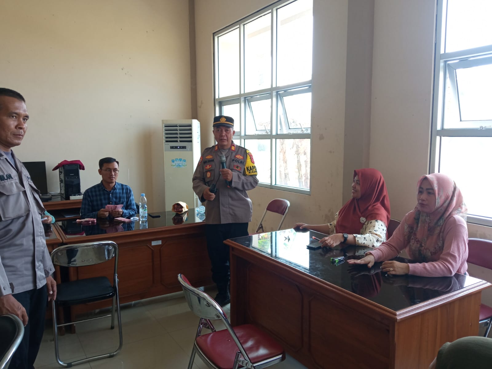 Kapolsek Kdp AKP Nana Suhana di dampingi personel Polsek Kdp melaksanakan monitoring dan pengamanan kegiatan penyalutan BLT DD Tahap III di kantor Kecamatan Kdp Kabupaten Majalengka.