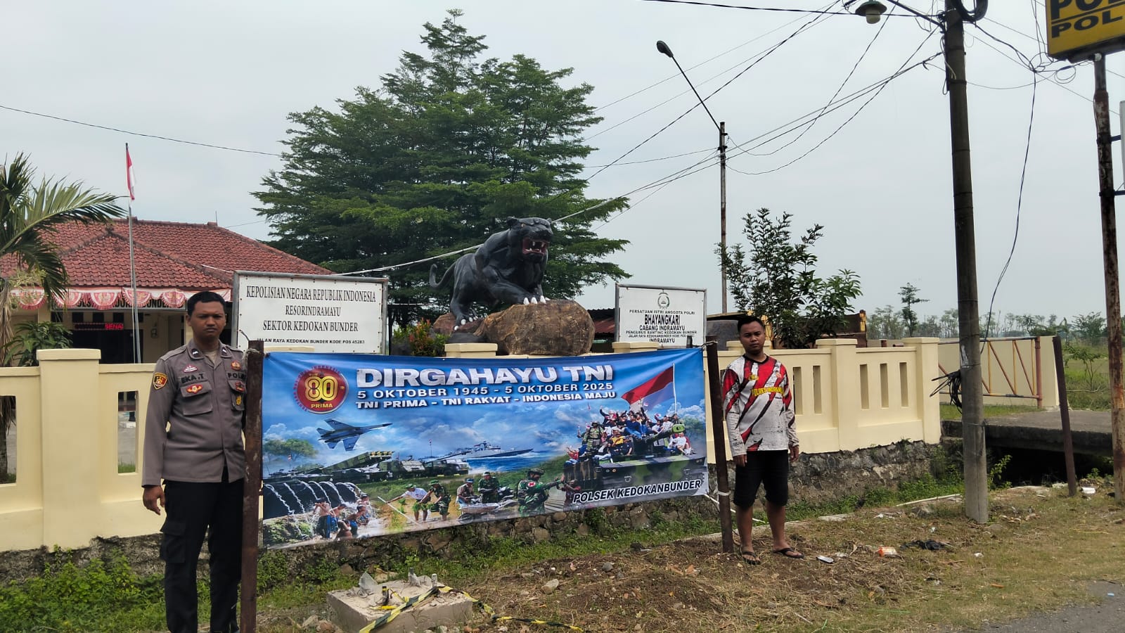 Polsek Kedokanbunder Pasang Banner HUT TNI ke-80, Perkuat Sinergitas TNI-POLRI