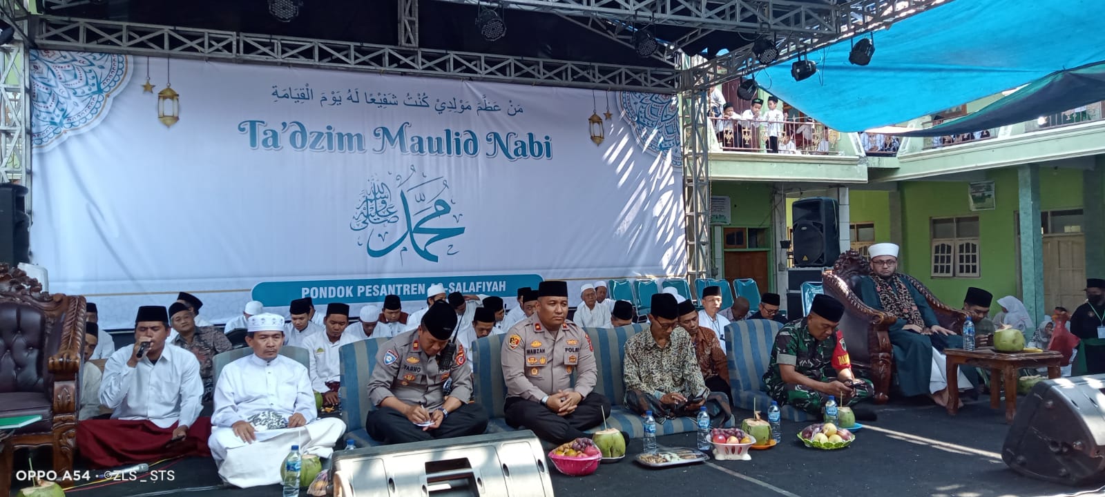 Indramayu,- Polsek Krangkeng jajaran Polres Indramayu Polda Jabar turut berperan dalam memastikan kelancaran dan keamanan acara Peringatan Hari Besar Islam (PHBI) Maulid Nabi Muhammad SAW tahun 1445 H yang diadakan di Pondok Pesantren As-Salafiyah, Desa Kalianyar, Kecamatan Krangkeng, Kabupaten Indramayu. Kamis (21/9/2023)
