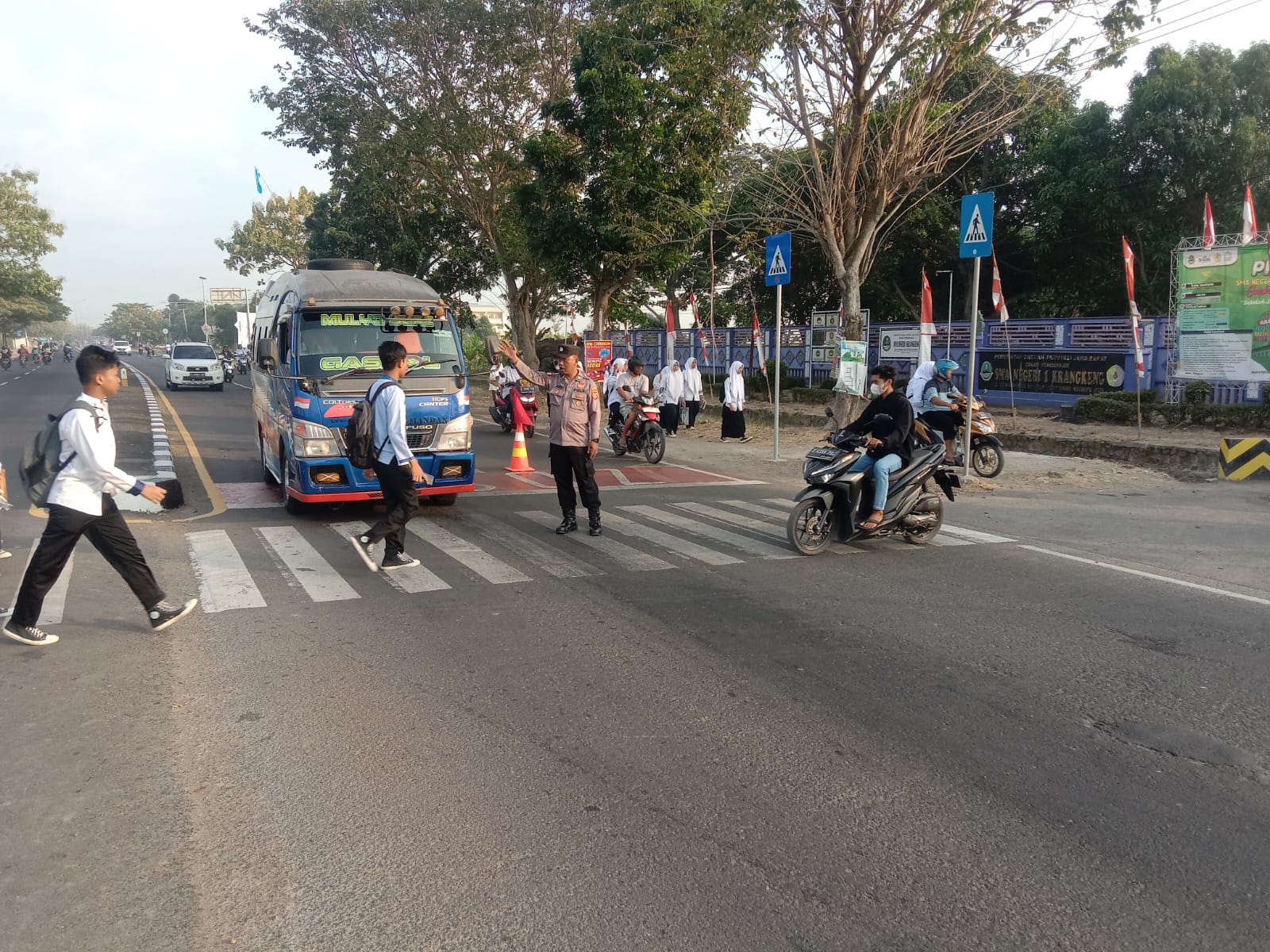 Dalam upaya menciptakan lingkungan berlalu lintas yang aman dan tertib, Polsek Krangkeng menggelar personelnya di titik-titik strategis, terutama di Jalan Raya Krangkeng dan sekitarnya, termasuk di depan SMAN 1 Krangkeng.