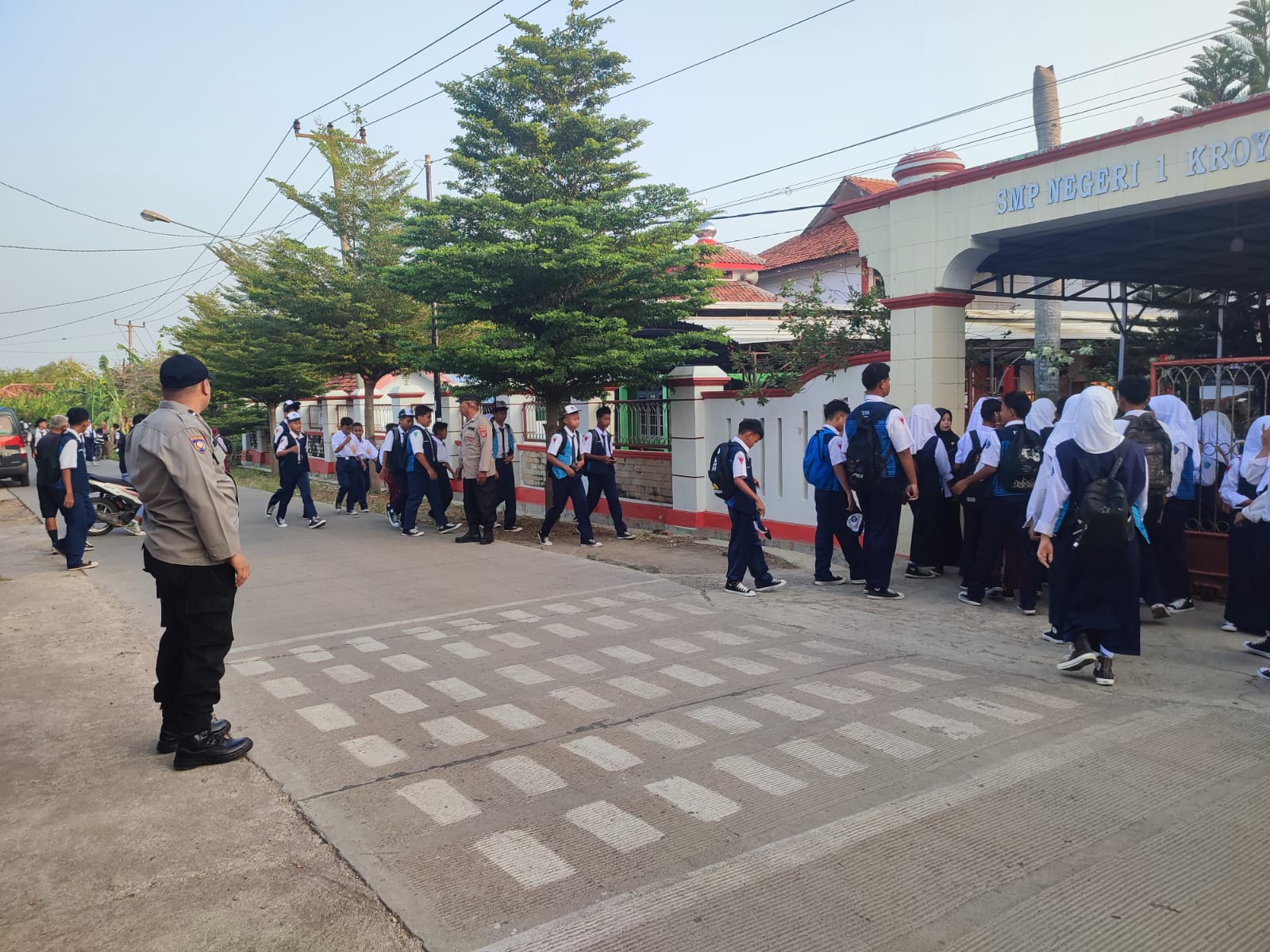 Indramayu,– Polsek Kroya jajaran Polres Indramayu Polda Jabar melaksanakan Pelayanan Gatur Pagi, di lingkungan sekolah Se- Kecamatan Kroya, Kabupaten Indramayu, Senin (22/7/2024).