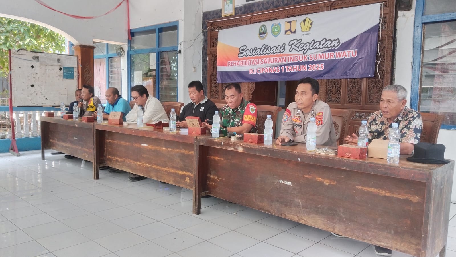 Indramayu – Polsek Kroya Polres Indramayu Polda Jabar menghadiri kegiatan sosialisasi rehabilitasi saluran induk Sumur Watu Cipanas 1 yang digelar di Aula Kantor Desa Sumbon, Kecamatan Kroya, Sabtu (16/8/2025).
