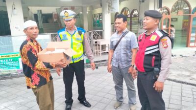 Takjil untuk berbuka puasa diserahkan oleh Pawas Ipda I Nyoman Suryawan di dampingi oleh Kanit Intelkam Panit Samapta Polsek Kuta Utara, yang diterima oleh pengurus beserta Jemaah Mushola Al-Hijriah.