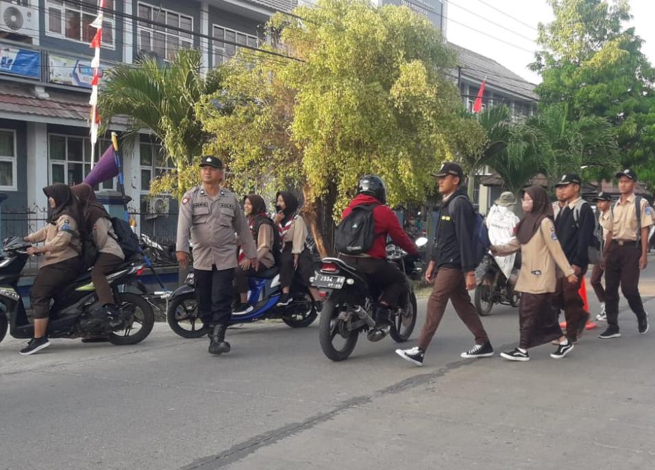 Polsek Lelea Berikan Pelayanan Pengaturan Lalu Lintas Pagi di Depan SMK N 1 Lelea