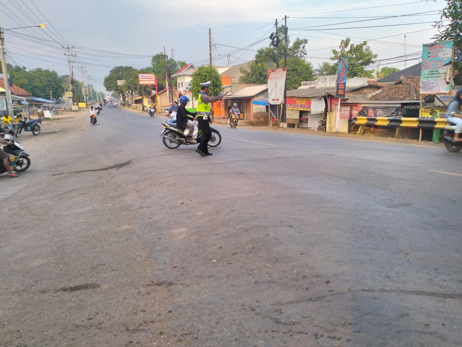 Selain mengatur lalu lintas, personil Polsek Lohbener juga siap membantu warga yang membutuhkan, seperti membantu menyeberangkan jalan atau memberikan informasi terkait rute perjalanan.