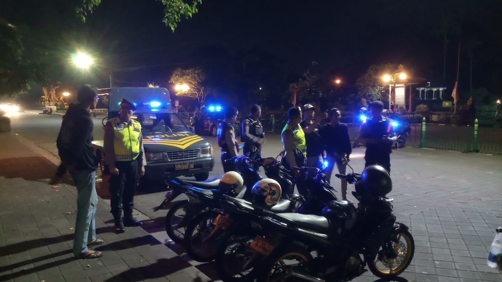 Untuk menjaga situasi kamtibmas agar tetap aman dan kondusif Polsek Mengwi mengintensifkan pelaksanaan patroli biru yang dikendalikan oleh Panit 2 Unit Samapta Ipda I Made Rawandana dengan menyambangi kawasan obyek wisata Taman Ayun, Desa Mengwi, Kecamatan Mengwi, Kabupaten Badung, Bali. Minggu 20 Agustus 2023 pukul 21.30 wita