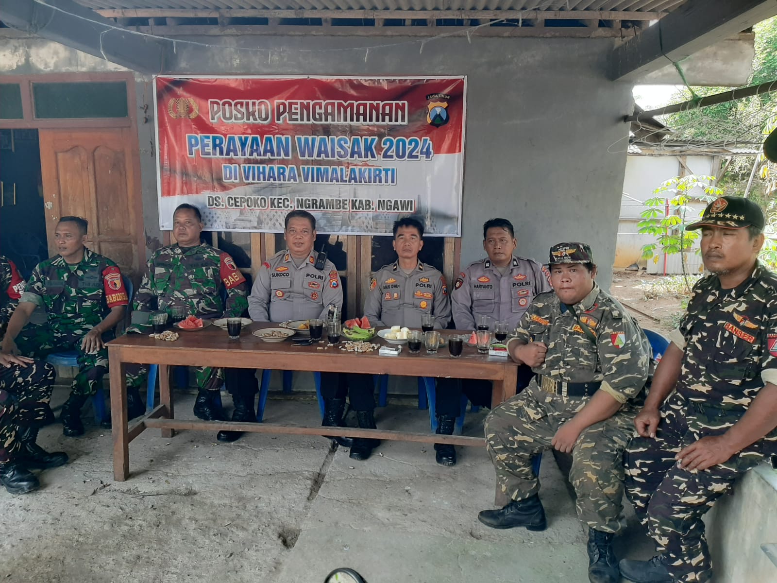 NGAWI,BUSERJATIM.COM GROUP- Polsek Ngawi Polres Ngawi bersama TNI melaksanakan pengamanan masyarakat yang merayakan kegiatan Ibadah Tri Suci Waisak 2568 BE Th. 2024 di Vihara Vimalakirti, tepatnya masuk Dsn. Berjing Ds. Cepoko Kec. Ngrambe, pada Kamis (23/5/2024)