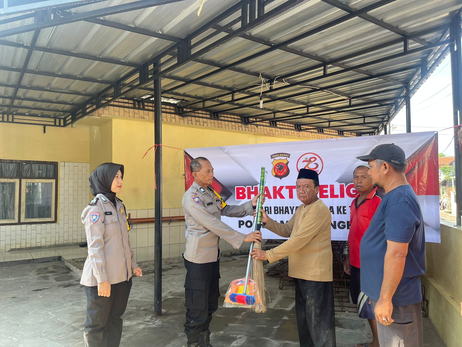 Majalengka, – Dalam rangka memperingati Hari Bhayangkara ke-78, Polsek Panyingkiran, Polres Majalengka, Polda Jawa Barat, menggelar kegiatan bakti religi di Masjid Jami Al Mukaromah, Blok Babakanwaru, Kecamatan Panyingkiran, Kabupaten Majalengka. Pada kegiatan tersebut, Polsek Panyingkiran memberikan berbagai alat kebersihan kepada pihak masjid untuk mendukung perawatan tempat ibadah.Kamis (20/6/2024).
