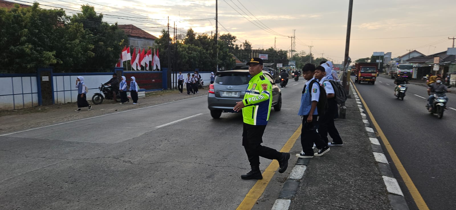 Kapolres Indramayu AKBP Mochamad Fajar Gemilang melalui Kapolsek Patrol KOMPOL H. Saripudin mengatakan, kehadiran personel di lapangan pada pagi hari bertujuan memberikan pelayanan prima kepada masyarakat, terutama para pelajar yang sedang menyeberang jalan menuju sekolah.