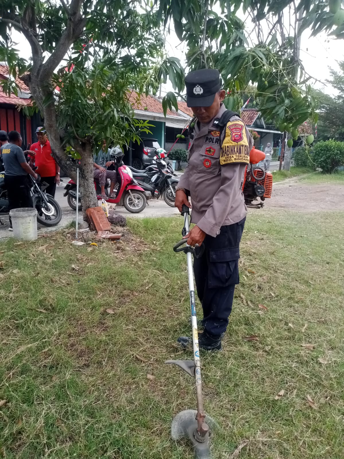 Indramayu – Bhabinkamtibmas Desa Terusan Polsek Sindang Polres Indramayu Polda Jabar Aipda Herru bersama unsur pemerintah desa dan masyarakat setempat melaksanakan kegiatan gotong royong Jumat bersih di Perumahan Pepabri, Desa Terusan, Kecamatan Sindang, Kabupaten Indramayu, Jumat pagi (8/8/2025).