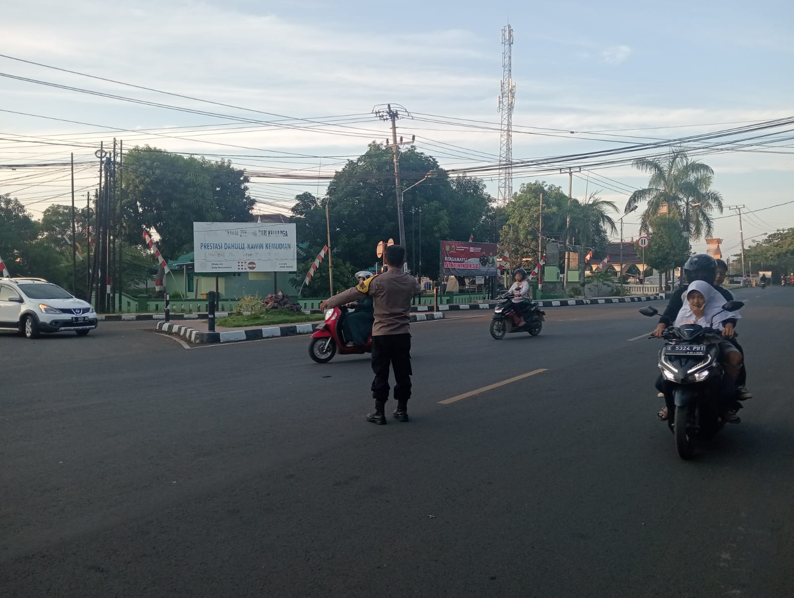 Kegiatan dilaksanakan oleh Aipda Sujono ini dilaksanakan mulai pukul 06.30 WIB hingga 07.30 WIB di depan SMPN Unggulan Desa Terusan, Kecamatan Sindang, Kabupaten Indramayu.