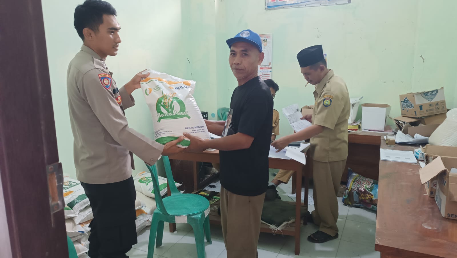 Dalam kegiatan tersebut, Bhabinkamtibmas Polsek Sindang berperan aktif dalam mengawasi jalannya pembagian beras, serta berkoordinasi dengan pihak terkait untuk memastikan bahwa seluruh penerima bantuan mendapatkan haknya sesuai dengan ketentuan yang berlaku.