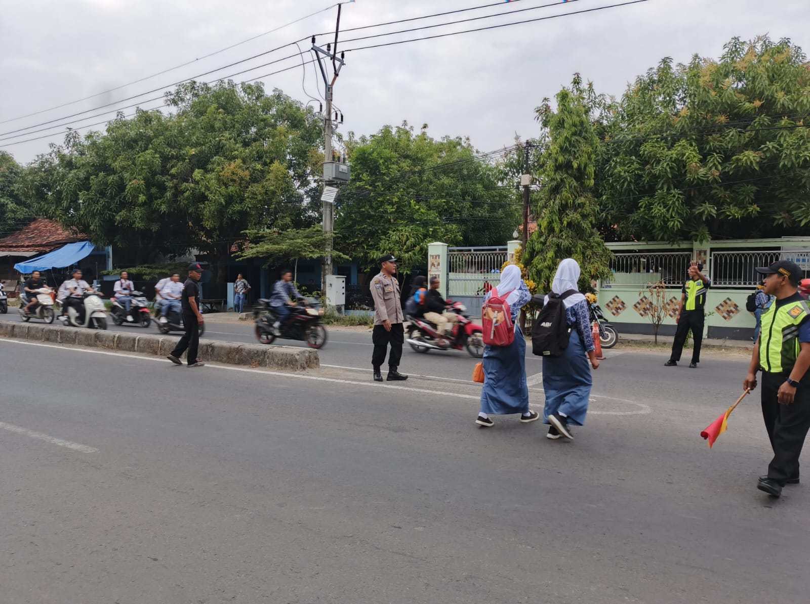 Kegiatan ini melibatkan personil Polsek Sliyeg yang ditempatkan di lokasi strategis untuk memantau dan mengatur arus lalu lintas, serta membantu penyeberangan bagi pelajar dan pengguna jalan lainnya.